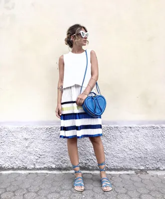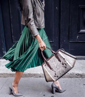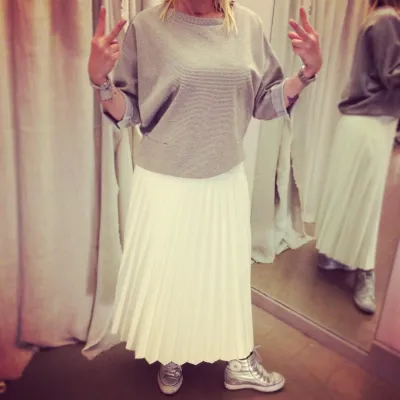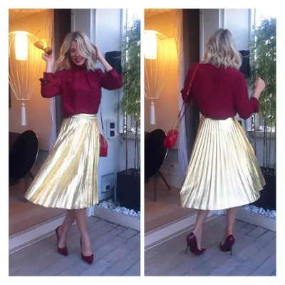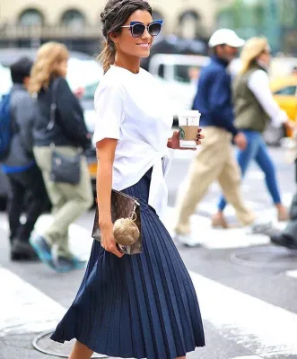 E' tornata prepotentemente di moda la gonna longuette plissettata, la più bon ton e leziosa dei guardaroba retrò ricorda il look delle collegiali.