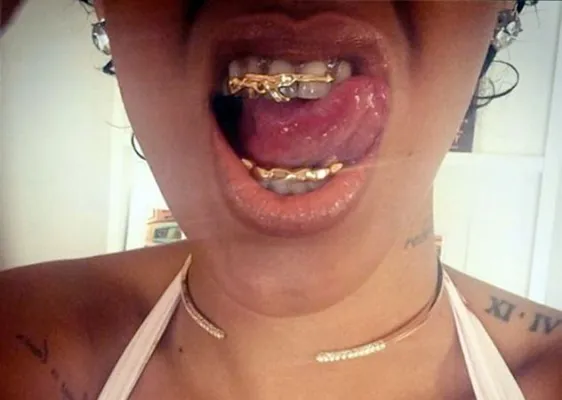 Impazza la mania della dentiera di lusso chiamata grill! Portare l?apparecchio ai denti non è più un disagio e molte star lo ostentano d?oro e carico di pietre, in versione molto trash!