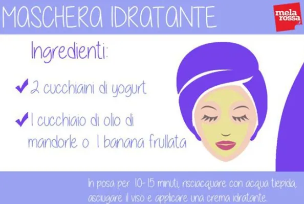 (www.melarossa.it) Maschera idratante: Unisci gli ingredienti e procedi all'applicazione per rendere la tua pelle morbida, idratata e nutrita. L?olio di mandorle ha un forte potere idratante e nutriente capace di rendere la tua pelle di nuovo elastica e soffice. Puoi eventualmente sostituirlo con una banana frullata ottenendo gli stessi risultati. Copyright: Melarossa
