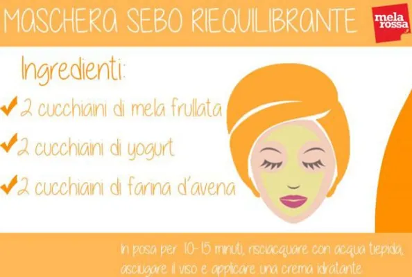 (www.melarossa.it) Maschera sebo-riequilibrante: Mescola gli ingredienti fino ad ottenere un composto omogeneo. Questa maschera ti aiuta ad eliminare le impurità dalla pelle e a richiudere i pori grazie all?avena, che ha la funzione dell?argilla, quindi asciuga il viso rimuovendo il sebo in eccesso, alla mela, che cruda ha una funzione astringente, ed allo yogurt, che serve a mantenere l'idratazione e a rendere la maschera poco aggressiva. Copyright: Melarossa