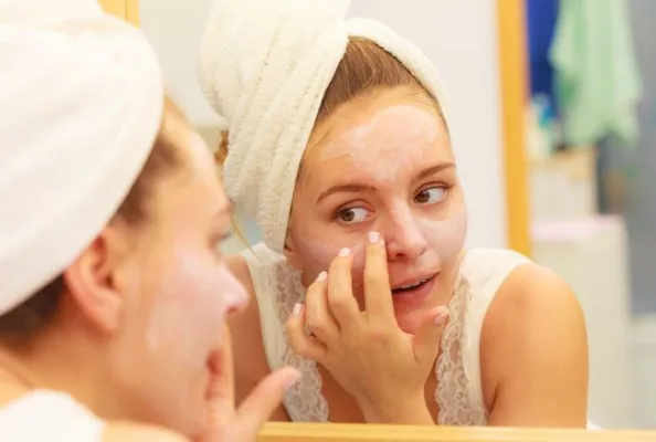 Applicazione: cospargi sul viso il composto, facendo attenzione alle zone delicate (contorno occhi e labbra). Lascia agire per 5 minuti e poi rimuovi con abbondante acqua tiepida. Asciuga bene il viso e idrata in profondità con una buona crema. Copyright: Shutterstock.com