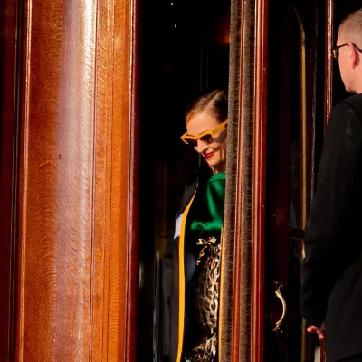 Il contrasto tra la scenografia di tipo cinematografico, l'ambientazione in un lussuoso hotel della Belle Époque e un antico simbolo di resistenza radicale, crea il palcoscenico ideale per la nuove proposte di Miuccia Prada: un punto di vista decisamente contemporaneo sui tradizionali canoni fuori dal tempo della femminilità.