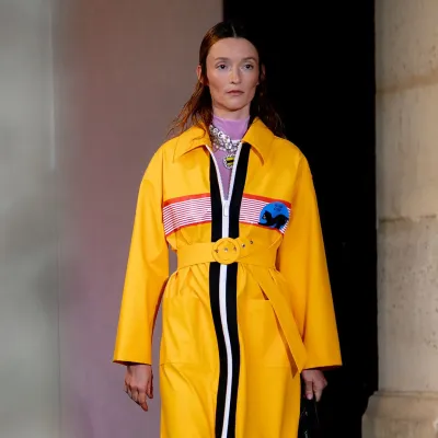 La "Pulzella" di Miu Miu va in scena all'Hotel Regina a Parigi, autentico gioiello della Belle Époque con vista sul Jardin des Tuileries e il Louvre, l'albergo situato in Place des Pyramides, la piazza in cui si trova l'iconica statua equestre in bronzo dorato di Jeanne d'Arc, opera del 1874 di Emmanuel Frémiet. Nell'acquario della lobby dell' albergo è collocata la nuova riproduzione della statua di Frémiet, che fa aleggiare sull'evento lo spirito di Giovanna d'Arco, simbolo della donna trasgressiva, com'è lo stile di Miuccia Prada.