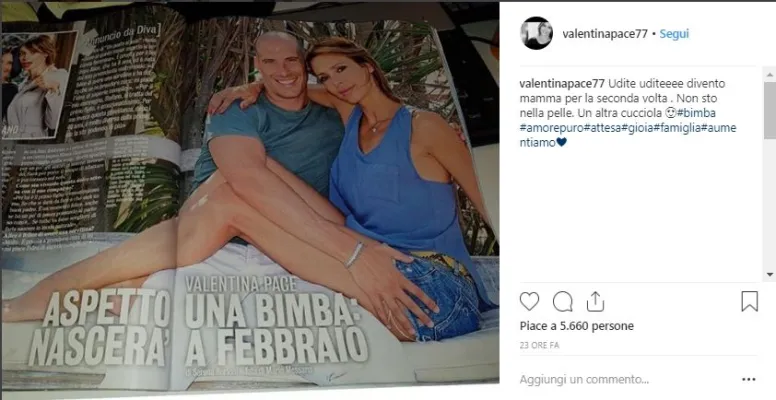 Dalle pagine del settimanale, Valentina ha aggiunto altri dettagli sulla gravidanza: "Sono al quinto mese, aspetto la seconda femmina". La sua prima figlia Alice, che oggi ha otto anni, pare abbia accolto con grande entusiasmo l'idea di avere una sorellina da accudire e coccolare: "Alice è felice di avere una sorellina e ha detto che se ne prenderà cura: mi piace l'idea di saperle complici".