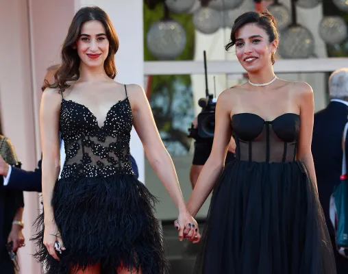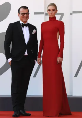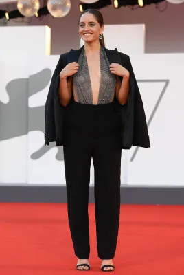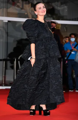 Nero anche il tailleur in seta con giacca doppiopetto misura over e pantaloni scampanati portato da Ginevra Elkann, che con questo "serioso" outfit sembra voler affermare, "sono qui a Venezia, ma non sono un'attrice". Molto ammirato l'abito di Prada longuette tagliato tutto a fettucce, indossato da Katherine Waterstone.