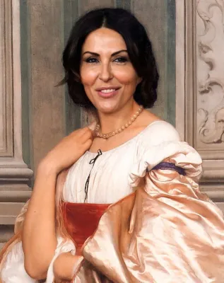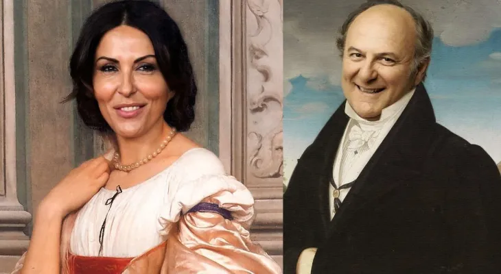 Lorella Cuccarini riletta con lo sguardo classicista di Jean Auguste Dominique Ingres in "Ritratto della baronessa de Rothschild"