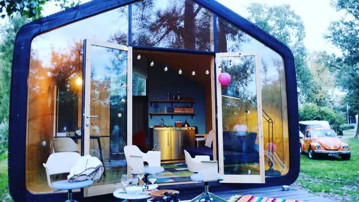 Si chiama Wikkelhouse e non è roba per bambini, ma una vera casa di cartone, costruita per moduli e realizzata dalla società olandese Fiction Factory. La casa di cartone, garantita per un periodo che va dai 50 ai 100 anni, resiste alle intemperie e sembra molto resistente, oltre che leggera e facilmente assemblabile. La sua caratteristica principale è proprio il materiale da costruzione: 24 strati di cartone ottenuto da alberi scandinavi, tenuti insieme da colla 'eco-friendly' e rivestiti da una speciale "pellicola" isolante e resistente agli agenti atmosferici. Ogni modulo (4,6 metri di larghezza per 1,2 di lunghezza e 3,5 metri di altezza) ha una superficie di 5,5 metri quadrati. Il prezzo? Sostenibile anche quello: tre moduli da assemblare (uno spazio minimo di 15 mq) costano 25mila euro. Per ora, questi moduli sono disponibili solamente in Olanda, Belgio, Lussemburgo, Germania, Francia, Regno Unito e Danimarca. Foto tratte da Instagram.