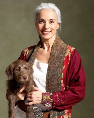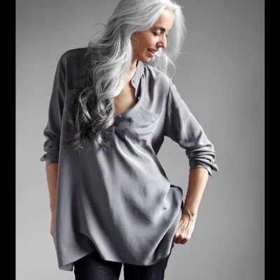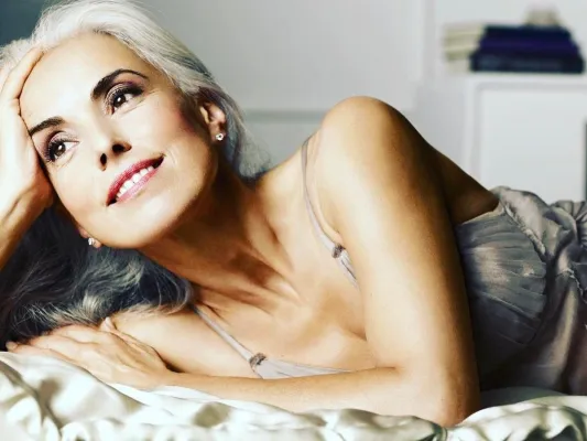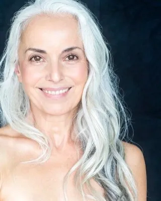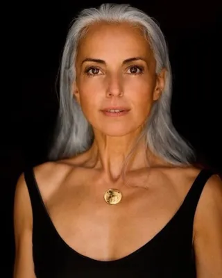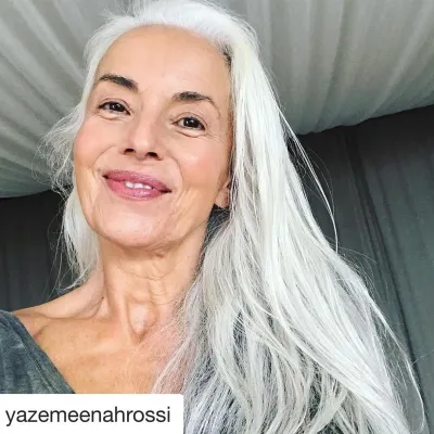 Nata in Francia è già nonna eppure a guardarla bene non sembra neppure mai diventata mamma, Yasmina ha infatti un fisico asciutto, lunghi capelli argentati e lucenti e pochissime rughe.