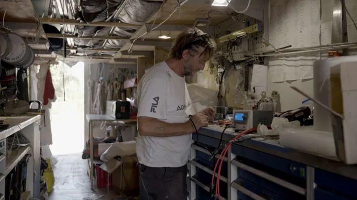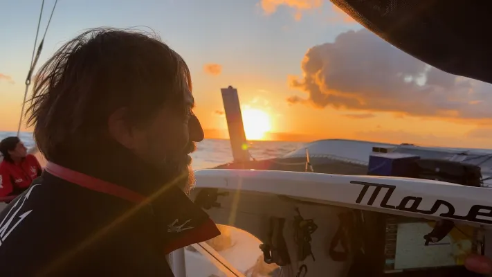 Sul trimarano, nel piccolo spazio, accanto a Soldini c’è un operatore esperto navigatore, qualche volta il regista, aiutati anche da droni e da un elicottero.