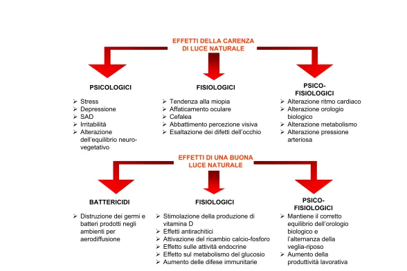 La luce del sole in casa può, infatti, avere diversi vantaggi: può aiutare a riscaldare l’ambiente, a beneficio del risparmio energetico, nonché valorizzare colori e arredamento. La luce solare ha anche un legame con la salute. Nei suoi fondamenti di illuminotecnica artificiale e naturale Simone Secchi, docente di Architettura dell’Università di Firenze, ha, ad esempio, illustrato gli effetti della carenza di luce naturale e quelli, viceversa, della sua presenza.