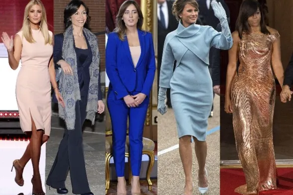 Dopo il botton down, le camicie bianche e le maniche arrotolate, le bandane, le pashmine e i gemelli d’oro la politica è donna, sostantivo femminile. Nell’attuale scenario in crisi le nuove icone si aprono a decisive performance che a volte si rivelano vincenti. L’antesignana per eccellenza del nuovo femminismo pret a porter è stata Michelle Obama con il suo stile democratico, accessibile a tutte ma con il pallino delle scarpe di ottima finitura per una donna solida e come si suol dire con i piedi per terra. Melania e Ivanka Trump il nuovo tandem first lady and first daughter coniugano il classico e il glamour e le loro scelte sono un messaggio preciso di svolta politica. Nonostante lo slogan del presidente “Buy America“ le due signore hanno superato il diktat indossando eleganti mise anche di noti stilisti di origine sudamericana. Un monito dunque di compartecipazione, una sottile apertura per dar voce a tutti anche a quelli che non hanno votato per loro. Non si smentisce mai la cancelliera Angela Merkel, sempre fedele all’uniforme d’ordinanza arcobaleno. Anche la scienziata dell’est cede al colore rendendola inconfondibile vicino ai capi di stato che sovente l’affiancano. Un work wear fino ad oggi vincente.