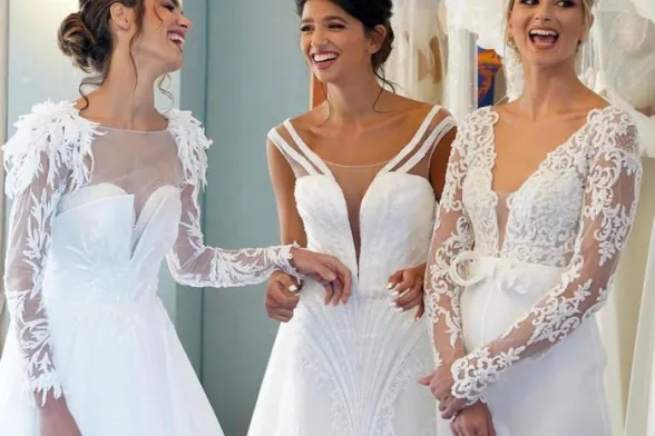 Tra tessuti leggeri e corpetti lavorati, occhio alla manica per la sposa e ai fiocchi. Infatti, non passano mai di moda i modelli principeschi: tornano gli abiti scivolati, con gonne non troppo ampie, e si prediligono tessuti leggerissimi, pregiati e di tendenza come il tulle, lo chiffon, le sete pure certificate e 100% naturali, i crêpe, nonché l’intramontabile pizzo. Particolarmente morbido e piacevole al tatto anche il nuovo satin “velvet”. Scolli omerali, a cuore o canottiera, ridisegnano la sinuosa femminilità di una sposa dall'immortale eleganza, mentre le maniche diventano l’accessorio per creare originalità: a palloncino, a sbuffo, cascanti o con drappi, sono l'elemento centrale che esalta la raffinata arte sartoriale. Il corpetto è lavorato, quasi un corsetto rubato alla lingerie, che dà spazio a plissettature, cristalli, applicazione di piume che adornano con ricchezza e ricercatezza la parte superiore dell’abito, mentre la gonna si libera dell’eccesso di pizzo e torna semplice e pulita. Romantici o audaci, nella moda sposa spuntano poi fiocchi qua e là, diventando un elemento di congiunzione o di decorazione che cattura l’attenzione, esaltando la sinuosità femminile.
