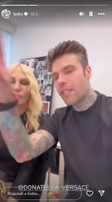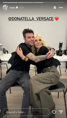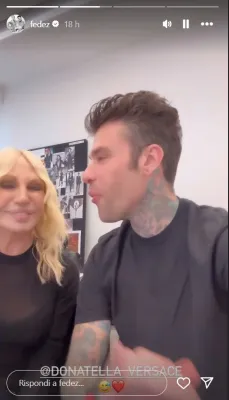 Ieri pomeriggio Fedez è andato a trovare Donatella Versace, carissima amica sia sua che della moglie Chiara per farle compagnia durante le prove e gli ultimi preparativi della sfilata in vista della Milano Fashon Week. Va detto che la stilista nell'ultimo periodo, in particolare dopo il pandoro gate si è molto avvicinata a Fedez, tanto da ospitarlo anche per una cena dog friendly con la sua cagnolina Paloma. I bambini la chiamano zia ed è lei a vestirlo in tutti gli eventi importanti. Anche nell'ultima occasione l'ironia tra i due non è mancata come testimoniano le stories postate dal rapper che si è proposto di realizzare un look per la sfilata aiutando Donatella nella scelta degli accessori. Lei ha acconsentito ma con riserva: “non ti garantisco che andrà in pedana”. Tutti si chiedono se stanno collaborando a una linea magari firmata proprio dall'artista.