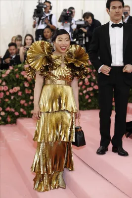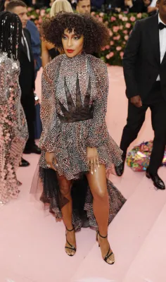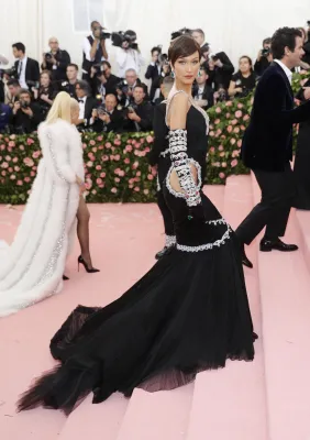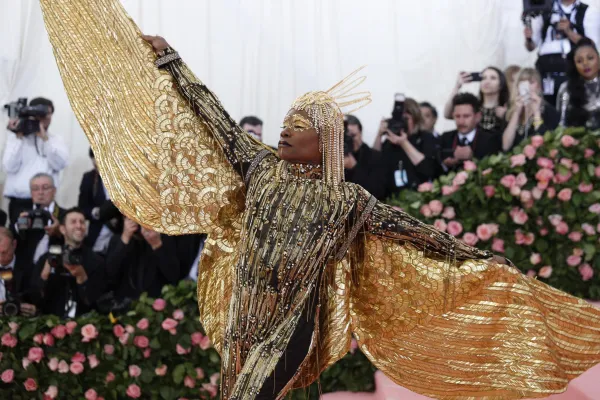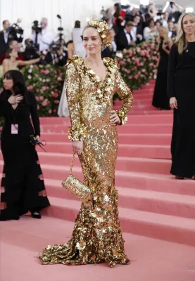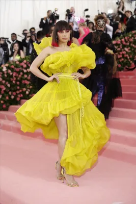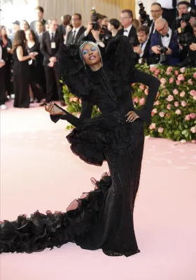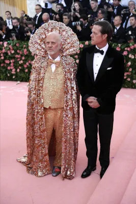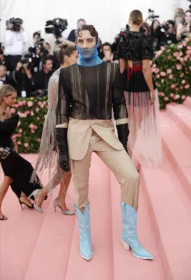Regina del trasformismo anche Katy Perry con un lampadario di cristalli firmato Moschino come vestito. Quanto a esagerazione non sono stati da meno Celine Dion con copricapo XL in piume, Jared Leto in Gucci dalla testa (la sua, riprodotta e portata in mano) ai piedi. Sorprendente anche Billy Porter versione faraone egiziano che ha fatto il suo ingresso su una lettiga sorretta da modelli a torso nudo. Poco chic molto choc.