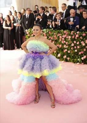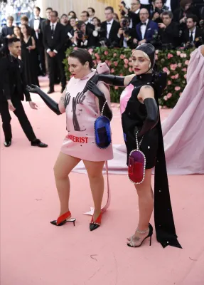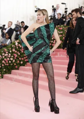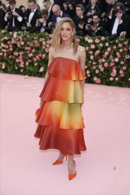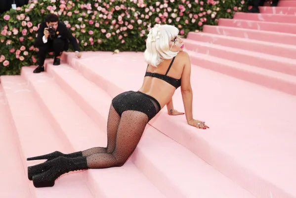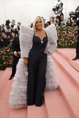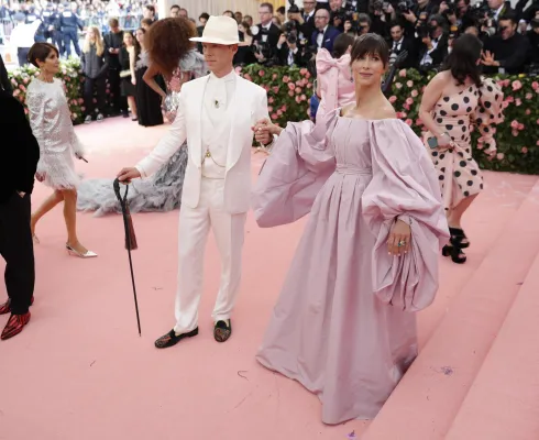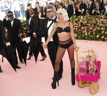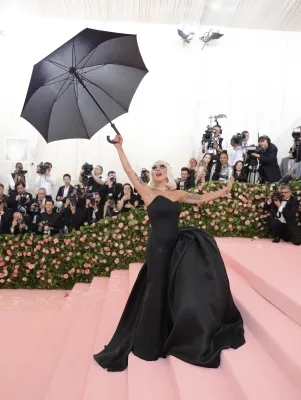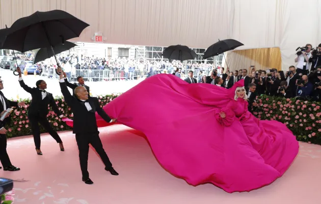 Sopra le righe come i look sfoggiati ieri sera dagli invitati. Qualche esempio su tutti? Sicuramente Lady Gaga, regina incontrastata della serata. La cantante ha fatto il suo ingresso sfilando sul tappeto rosa avvolta in una cappa-mantello fucsia con tanto di strascico chilometrico. Una mise da matrioska che ne nascondeva in realtà altre tre: un abito nero accompagnato da ombrello en pendant, un abito fucsia attillato stile Madonna in Material Girl e poi il look finale: calze a rete, zeppe esagerate e lingerie. Un outfit in linea con il tema camp compreso il carrellino con le rotelle dorate. A fare gli onori di casa, la direttrice di Vogue Anna Wintour, di piume rosa vestita.