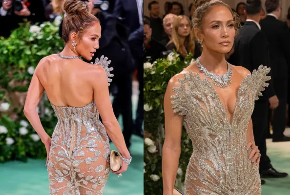 Ed ecco dunque le due milioni di perle di stagnola per Jennifer Lopez, una delle madrine del Gala e una veterana con 14 volte sul red carpet del Met, che è sfilata sul in un vestito nude look di Schiaparelli che ha richiesto 800 ore di lavorazione, al collo una collana Tiffany della nuova collezione Celeste con un diamante da 20 carati. L’altra artista che ha puntato sul nude look è Emily Ratajkowski che ha scelto un seducente abito della collezione autunno inverno 2001/2002 di Atelier Versace. Un capolavoro crochet, completamente see-through, e interamente decorato con paillettes e perline.