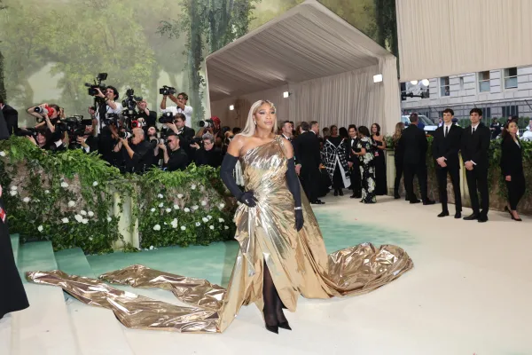 Per il suo primo “Oscar della moda”, la cantante sudafricana Tyla è stata vestita da Balmain con un look da sogno. Basandosi su “tempo” come parola chiave del dress code al Met Gala 2024, il brand ha disegnato per l’artista un abito fatto di sabbia, strizzando l'occhiolino al concetto dello scorrere del tempo. A completare l’opera una clessidra tenuta tra le mani da Tyla che è stata portata sul red carpet quasi di peso per non scomporre l’abito scultura.