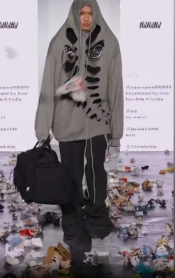 La provocazione aveva uno scopo sociale ma l’esito è stato, per la prima volta, quello di una passerella colma di spazzatura con modelle e modelli bersaglio di rifiuti di ogni genere. Nell’ultimo giorno della Milano Fashion Week, è successo di tutto alla sfilata di Avavav, marchio svedese che ha presentato la collezione Autunno/Inverno 2024 in modo alquanto singolare.