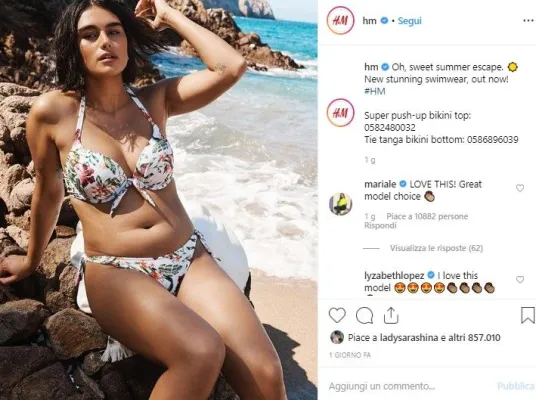 Un messaggio per tutte le donne, giovani o meno, che si apprestano ad affrontare la prova costume. E il pubblico apprezza: la foto di una modella dalle forme morbide in bikini sulla pagina Instagram del noto marchio di abbigliamento ha conquistato i follower. Oltre 800mila like in 24 ore e comenti entusiasti: “Finalmente una donna reale”. E ancora: “Grazie per aver mostrato un corpo vero, fuori da ogni standard di bellezza irragiungibile”, aggiunge un’altra.