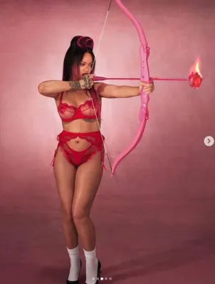 Rihanna ha pubblicato sul suo Instagram una serie di scatti che dal Natale ci portano direttamente a San Valentino. La cantante si mostra infatti con indosso un completo intimo super sensuale rosso. Foto molto piccanti con allegata la scritta "Torna qui ed amami". Un invito difficile da non accettare. Un corpo sexy nonostante i due figli appena nati, nel 2022 e nel 2023. Insomma anche alle mamme possono essere molto sensuali: basta un reggiseno trasparente, copricapezzoli a forma di cuore, reggicalze e una brasiliana di pizzo che lascia in bella mostra i glutei. Ogni volta che mette in pausa la musica si occupa della sua linea di intimo che secondo i dati sulle vendite va a gonfie vele.