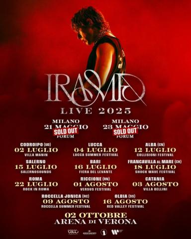 Il tour partirà il 2 luglio da Codroipo (UD), Villa Manin, per poi proseguire venerdì 4 luglio a Lucca con un appuntamento al Lucca Summer Festival in Piazza Napoleone. Sabato 12 luglio sarà la volta di Alba, con un live al Collisioni Festival, seguito da Salerno il 15 luglio in Piazza della Libertà e Bari il 16 luglio alla Fiera del Levante. Il 18 luglio Irama sarà protagonista a Francavilla al Mare (CH), sul palco dello Shock Wave Festival. Martedì 22 luglio salirà sul palco del Rock in Roma all’Ippodromo delle Capannelle, mentre venerdì 1 agosto sarà a Riccione per il Versus Festival. Il tour proseguirà il 3 agosto a Catania (Villa Bellini), il 9 agosto a Roccella Jonica (RC) al Roccella Summer Festival, per poi toccare il 16 agosto a Olbia (SS), sul palco del Red Valley Festival presso l’Olbia Arena.