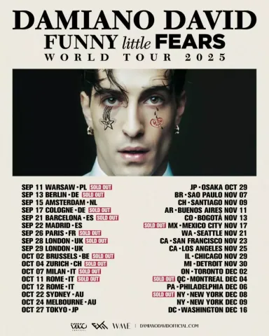 I brani ad ora pubblicati da Damiano hanno inoltre superato i 200 milioni di stream complessivi nel mondo. In merito all’album, Damiano ha commentato sui social: “Ho sempre avuto paura dell’altezza, che da un momento all’altro la terra si rompesse sotto i miei piedi e tutto sparisse in un secondo. Ho avuto paura dell’oscurità, un’immensità che non riesco a vedere o a capire, che potrebbe catturarmi se non faccio attenzione a dove metto i piedi. Ho avuto paura di me stesso, di chiedere troppo, di rincorrere qualcosa che non sapevo neppure di volere veramente. E sinceramente a volte ho ancora paura, ma mi sono scritto un manuale. Spero che anche voi lo troviate utile. L’ho chiamato ‘Funny Little Fears'”.