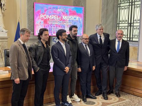 ROMA (ITALPRESS) – Si è svolta a Roma, al Ministero della Cultura, la presentazione di “Pompei è Arte”, il programma di 10 grandi concerti che si terranno all’Anfiteatro del Parco Archeologico di Pompei nei mesi di giugno e luglio. Il cartellone, patrocinato dal Ministero della Cultura e dal Parco Archeologico di Pompei e in collaborazione con il Comune di Pompei, prevede le seguenti esibizioni: Carmen Consoli (8 giugno); John Legend (11 giugno); Russell Crowe (9 luglio); Ludovico Einaudi (12 luglio); Il Volo (17 luglio); Biagio Antonacci (18,19,20 luglio); I Pooh (22 luglio) e Francesco De Gregori (26 luglio). “Oggi celebriamo un matrimonio molto felice tra il nostro straordinario patrimonio culturale e il belcanto, eccellenza nazionale di recente riconosciuto dall’UNESCO. Sono due elementi che si coniugano e vanno nel segno dell’articolo 9 della Costituzione che ci parla di tutela e valorizzazione della nostra bellezza e, in questo caso, di Pompei. Con l’ultima Legge di Bilancio abbiamo rifinanziato gli scavi a Pompei. Attualmente ne sono attivi sessanta e ci aspettiamo che da questo scrigno possano uscire fuori altri tesori come quelli che abbiamo visto di recente emergere. E dobbiamo continuare nell’opera di valorizzazione”, ha dichiarato il Ministro della Cultura, Gennaro Sangiuliano.