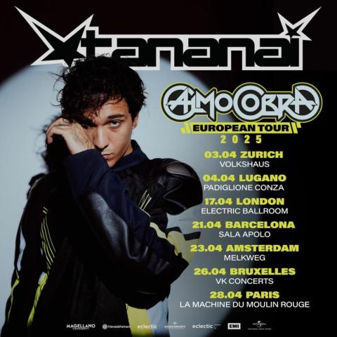ROMA (ITALPRESS) – Dopo aver collezionato innumerevoli sold out nel 2024 nei palasport più importanti d’Italia e dopo l’annuncio della tournèe estiva 2025, Tananai aggiunge oggi un nuovo traguardo per la sua carriera live: per la prima volta, l’artista si esibirà in tour nei club europei nel mese di aprile 2025, con 7 appuntamenti nelle principali città d’Europa. Il “Calmocobra – European Tour” vedrà Tananai viaggiare per il continente europeo portando per la prima volta la sua musica sui palchi dei club di Zurigo, il 3 aprile, e continuando a Lugano, Londra, Barcellona, Amsterdam, Bruxelles, fino all’ultima tappa a Parigi, il 28 aprile.