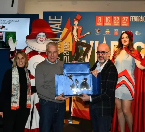 VIAREGGIO (ITALPRESS) – Angelo Argento, presidente dell’associazione Cultura Italiae, premiato dalla Fondazione e dal Comune con il “Burlamacco alla cultura”, ha già condiviso con la presidente Marialina Marcucci l’idea per due nuovi progetti. “La prima, che potremmo già lanciare quest’anno, è coinvolgere gli artisti contemporanei chiedendo loro di realizzare uno stendardo, un drappo, da donare, ed esporre, all’hangar del carrista vincitore dell’edizione. Così da creare nel tempo un patrimonio di opere”, sul modello del Carnevalotto. La seconda, invece, è la composizione di un’operetta comica “Per raccontare lo spirito satirico del Carnevale e di Viareggio – ha spiegato Argento – ed esportarlo così in tutti i teatri del mondo”.