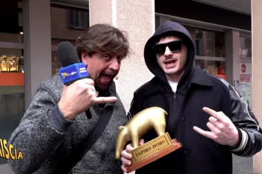 Immagine Tapiro “Striscia” a Olly per vittoria Festival “oscurata” da Marta Donà di Italpress 24/02/2025