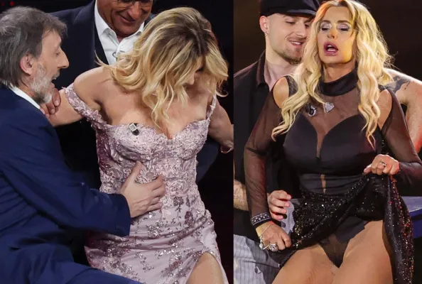 Quando Valeria Marini è stata invitata a cantare il brano di Marcella Bella, “Pelle Diamante”, tutte le altre si sono alzate e hanno fatto a gara per farla uscire dall’inquadratura e relegarla dietro le quinte, innescando una tristissima guerra al primo piano perduto e al tentativo di “impallare” qualche rivale. Non c’è dubbio che tutte soffrano la mancanza di quella lucina rossa della telecamera che anni fa aveva regalato loro successo e notorietà. Mancava poco che si spintonassero.