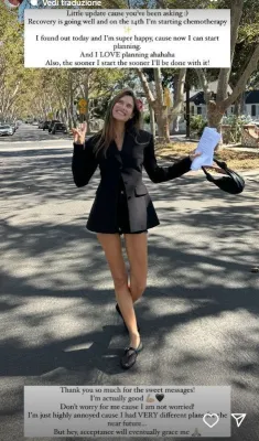 Una battaglia dura che la modella ha deciso di condividere con i fan, tappa dopo tappa, anche per dare speranza alle tante donne che si trovano nella sua stessa condizione. Con i capelli corti e l'hashtag #lavitaèbella, la modella italiana aveva annunciato di essersi tagliata i capelli come primo step per la terapia (Leggi qui). E non manca di rivolgersi ai fan: "Coraggio a chi, come me, sta iniziando la terapia", scrive la top model a corredo dello scatto che mostra in primo piano la cicatrice all'addome dovuta all'intervento.