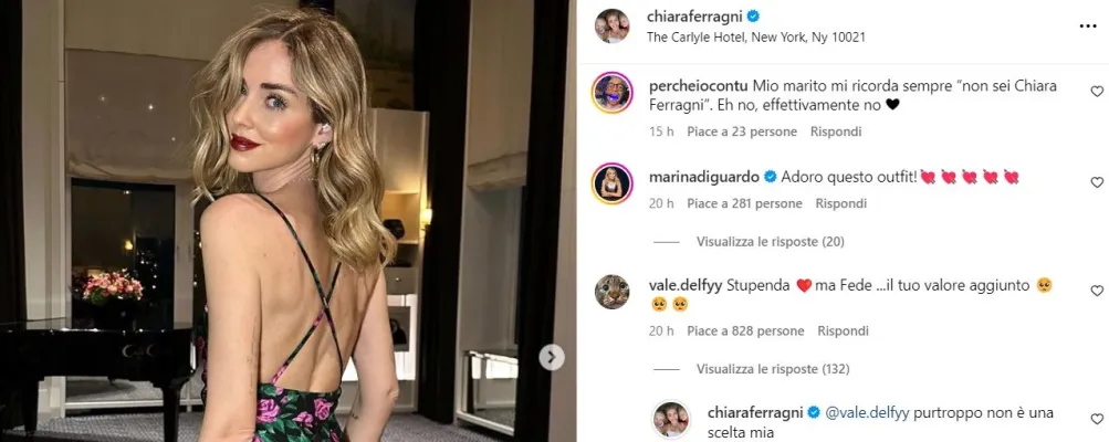 Chiara Ferragni alla fine ci dice come è andata col marito Fedez. Lo scopriamo spulciando gli ultimi commenti. In uno che dice: "Federico dovrebbe ricordare quando lui ha avuto bisogno di te. I momenti belli sono facili da condividere", mette un bel like quasi a confermare di essersi sentita abbandonata quando ad avere bisogno è stata lei. E poi quando un'altra fan commenta: "Stupenda, ma Fede... il tuo valore aggiunto", lei risponde senza lasciare più dubbi: "Purtroppo non è una scelta mia".