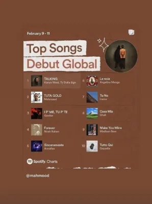 Nella Top Songs Debut Global, la classifica delle canzoni più ascoltate nel mondo, ma non sono presi in considerazione gli Stati Uniti, ben sette brani su dieci provengono da Sanremo. Su podio troviamo Talking di Kanye West e di Ty Dolla $ign, ma Tuta Gold di Mahmood è al secondo posto e I p’ me, tu p’ te di Geolier al terzo, quarta è Sinceramente di Annalisa e quinta La noia di Angelina Mango. in sesta, Tu no di Irama in settima, Casa mia di Ghali in ottava e Tutto qui di Gazzelle in decima. Enzo Mazza, amministratore delegato della Federazione Industria Musicale Italiana spiega: “Naturalmente non significa che questi artisti sono ascoltati nel mondo, solo una parte, ma vuol dire che in quella settimana ci sono stati degli ascolti così elevati in Italia da portarli in queste posizioni. Certo, poi quando un ragazzo in America va a vedersi la Top Debut è invogliato a sentire chi sono e ad ascoltarli”.