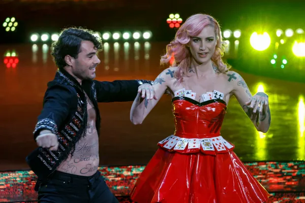 Ad affiancarlo sul palco del Teatro Ariston è proprio Ema Stokholma, che, nella serie, non si regge in piedi per la storia d’amore finita con l’illusionista Rodrigo. Carlo dovrà cercare di spronarla e impedirle di farsi di troppo sonniferi. Ema è tornata un po’ indietro nel tempo, “a un periodo della mia mia vita in cui ero svampita e irresponsabile”, ci racconta, “ma non ho mai preso farmaci pesanti”, assicura, “ho optato per l’analisi per fortuna. Posso dire che l’analisi mi ha salvata. Ricordo che ero irresponsabile: ho chiuso con la mia fallimentare carriera di modella perché a un appuntamento alla 18 non mi sono svegliata in tempo. E vi ho detto tutto. Per Carlo ho ripescato quell’Ema lì”.
