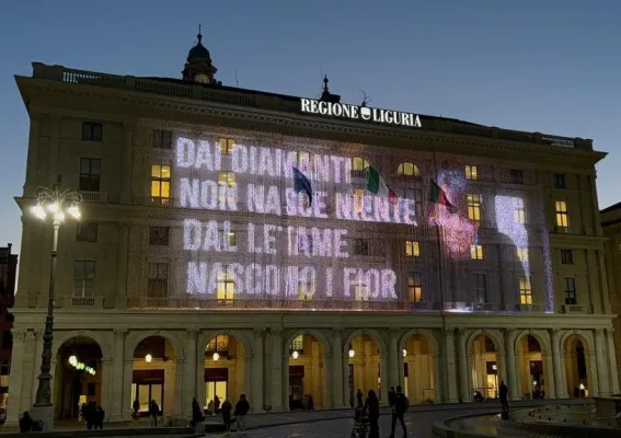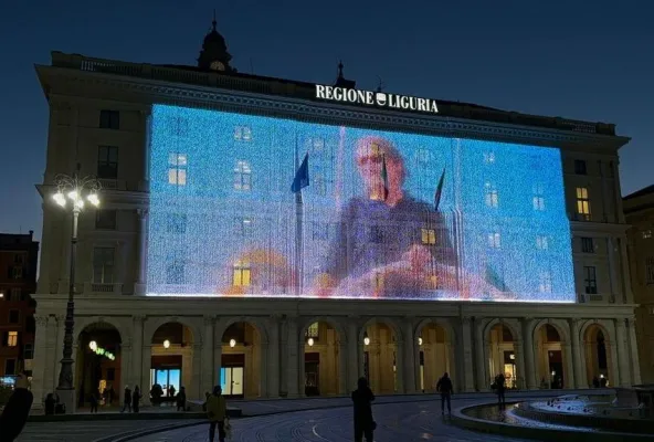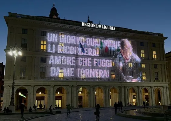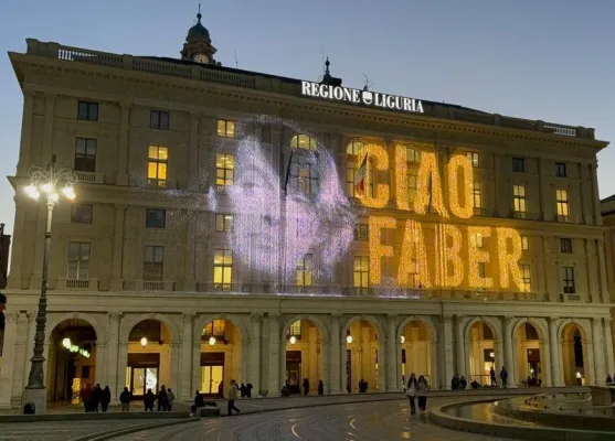 E da quattro giorni sulla facciata del palazzo della Regione c’è un omaggio luminoso e musicale per ricordare la vita e la produzione artistica di Fabrizio con un video tributo e una selezione di immagini e frasi tratte dalle più celebri opere del cantautore: “Crêuza de mä”, “Bocca di rosa, “Il pescatore”, “Via del campo”, “La Canzone di Marinella”, “Amore che vieni, amore che vai”, “Volta la carta “La guerra di Piero” e “Anime salve”.