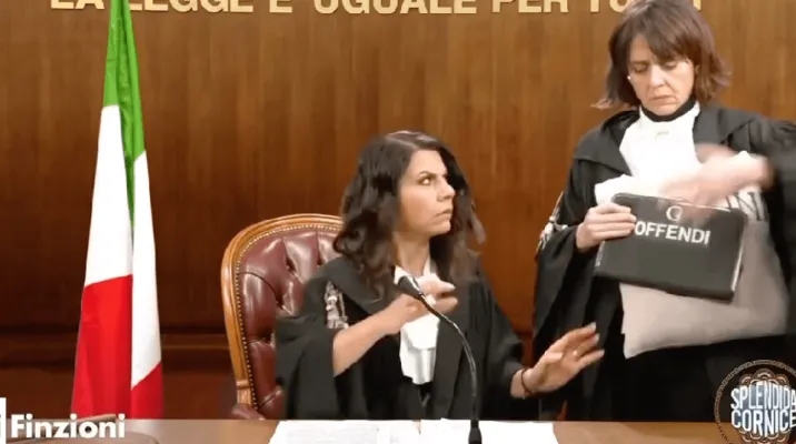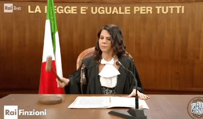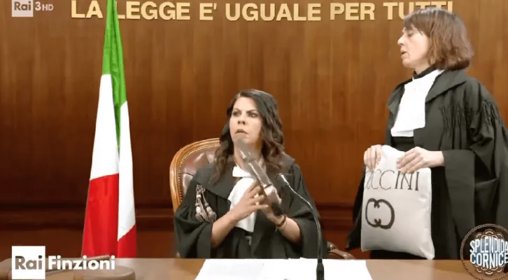 Gallo confessa: “Me le ha regalate una signora con un accento di Cuneo che è venuta in regione: doveva fare dei regali al presidente e poi ci ha fatto dei regali a tutti. Il nome non lo ricordo”. A quel punto spunta fuori la testimone eccellente, “Chiamo a deporre Pascale Francesca”. “In merito ai fatti volevo dire che…. “. Ma appena inizia a parlare scatta una sirena di allarme rosso. Cucciari conclude frettolosamente la seduta: “Mi dicono che sta per essere approvata la separazione delle carriere e io prima di essere separata la condanno al massimo della pena. La seduta è tolta”. E il siparietto comico si chiude con l’immagine di Gallo dietro le sbarre che si dichiara innocente e le risate del pubblico in studio. A testimoniare la riuscita di un programma capace come pochi di ridare a Rai3 la sua identità e di confermare lo stato di grazia di un’artista come Geppi Cucciari che anche a Sanremo a dimostrato di saper tenere la scena come pochi altri. A quando un Festival tutto per lei?