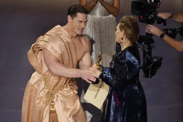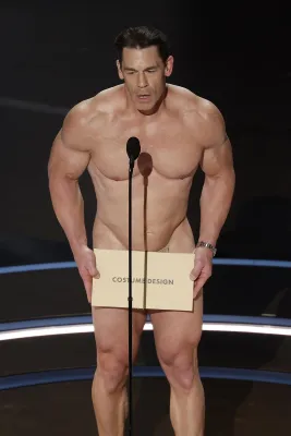 Poco prima invece l’ilarità generale si era scatenata per l’entrata in scena di John Cena, completamente nudo. L’ex wrestler ha voluto citare l’episodio che si era verificato nel 1974 e ha fatto un goffo ingresso fingendosi timido e cercando di coprirsi i genitali con il biglietto del premiato di turno. Indosso solo un paio di birkenstock e pausa ad effetto mentre annuncia: I costumi sono importanti”. Kimmel, il presentatore della serata, corre a coprirlo con una tenda e così finalmente John Cena può spostare il biglietto strategico e annunciare la vincitrice.