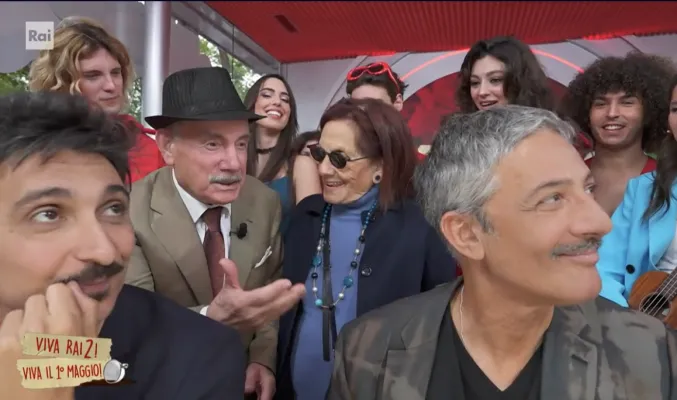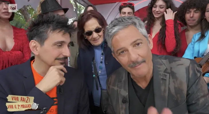 Occhiali da sole, dolcevita e sorriso ironico. Non è certo passata inosservata la partecipazione della mamma di Rosario Fiorello a “Viva Rai2”. La mattina del Primo Maggio la signora Rosaria Galeano ha fatto la sua comparsa nel glass al Foro Italico, proprio alle spalle del figlio e accanto a Ruggero, ormai parte integrante dello show mattutino. E ovviamente non sono mancate gag e battute che hanno regalato un’immagine gioiosa della signora descritta da Fiorello come una forza della natura: “Io sono molto più anziano di mia mamma, sono pieno di dolori. Lei è una ragazza”.