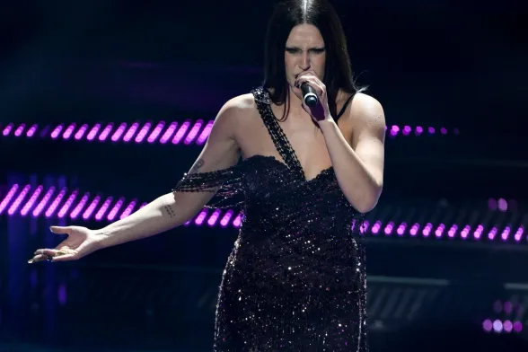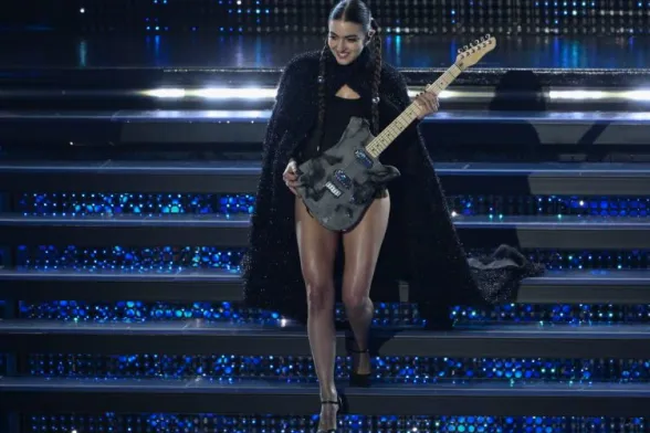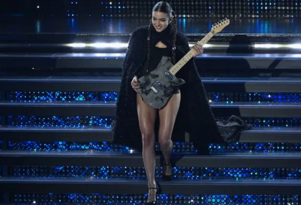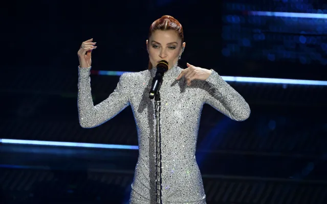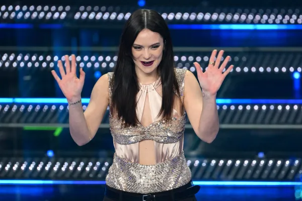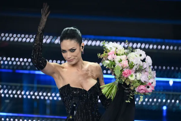 La seconda di questa sera con Frangia che sfiora le ciglia e capelli lunghi lasciati mossi dietro le spalle… gli hairstylist di Sanremo vogliono lanciare una tendenza?