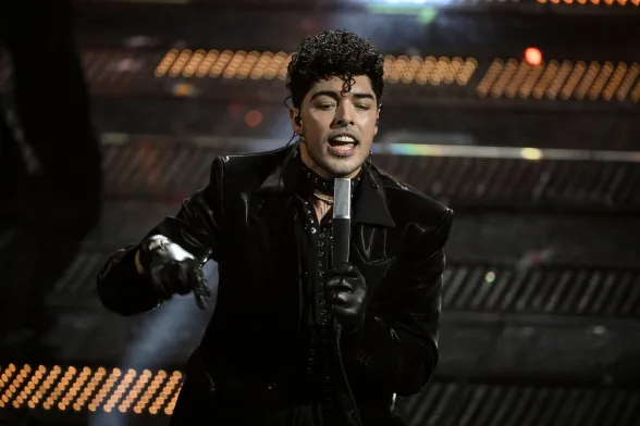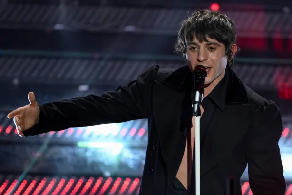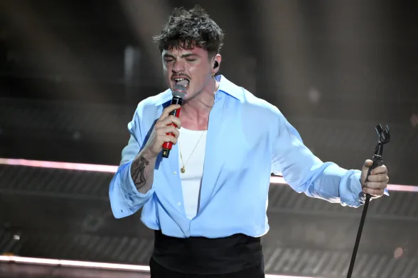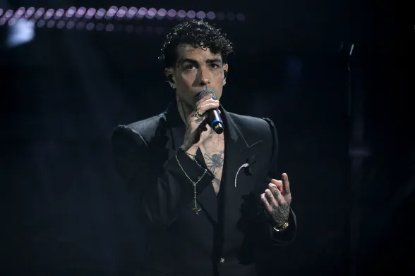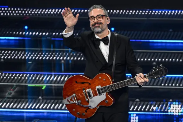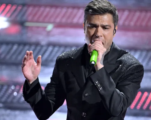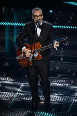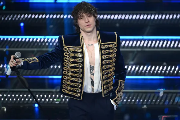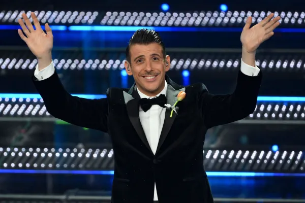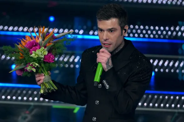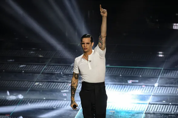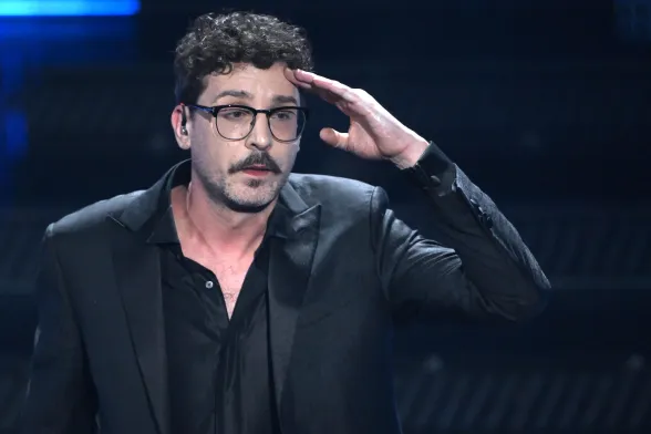 Coerente con le scelte stilistiche dell’intero festival. Conferma un triste total black facendoci rimpiangere le iconiche stampe Versace sulle camicie che indossava agli eventi mondani con la Ferragni, i figli e Matilde.
