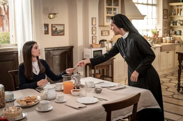 Suor Angela ha la capacità di relazionarsi in modo mistico, attraverso i suoi dialoghi, con Dio e, in ogni fine episodio, ci lancia nel mare degli interrogativi. La fiction fa ridere, piangere e riflettere. Ma non solo: c'è un'attenzione molto forte al femminile. Il mio personaggio, in questa edizione, ci sarà un pochino meno, ma ogni tanto si interessa delle sue ragazze. Ne combina una delle sue e viene rispedita in carcere, dove aiuta le donne con i bambini del penitenziario. Sono contenta e orgogliosa di aver lasciato spazio a Francesca Chillemi, che avevo conosciuto quando venne eletta a Miss Italia, ero in giuria. Dalla prima stagione in questi anni è diventata un'attrice sempre più brava e sensibile. Quando lavoro con lei riesco a esprimere doti che non ho mai avuto. Non è mai facile lasciare una serie, quindi chi lo sa…'. Francesca Chillemi alias Azzurra, che vedremo ancora novizia, non svela se deciderà di diventare suora ma precisa: 'Non prendo nessun carrozzone in mano, lo lascio ad Elena, il resto lo condivido con Valeria Fabrizi, le nuove ragazze e con Pierpaolo Spollon.