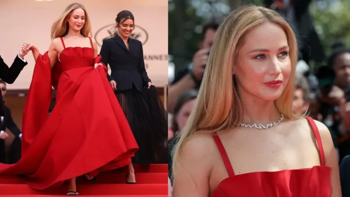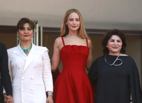 La lotta delle donne in Afghanistan e Iran è assente dal festival di Cannes che pure in questa edizione ha ampliato lo sguardo sul femminile. C'è un'eccezione però, per la quale è arrivata dall'America l'attrice premio Oscar Jennifer Lawrence. Un sostegno con straordinaria visibilità, era bellissima con i capelli lunghi e un abito da sera rosso fuoco (Dior haute couture) sulla Montée des Marches di Anatomie d'une chute di Justine Triet, un'apparizione diventata virale per un dettaglio scandaloso a Cannes: ai piedi, quando si è trattato di riscendere i gradini, aveva infradito nere che si sono viste quando ha dovuto alzare il vestito lungo per non inciampare.