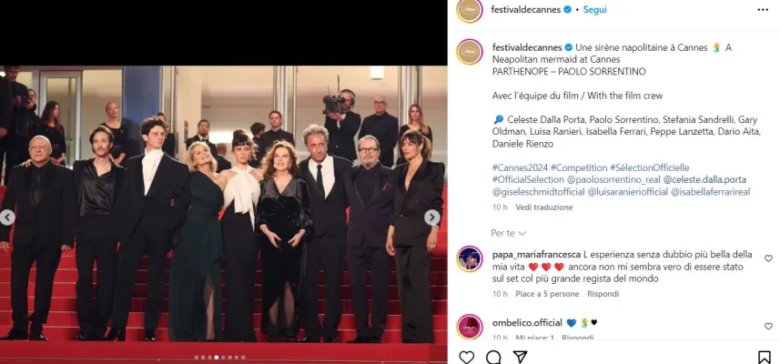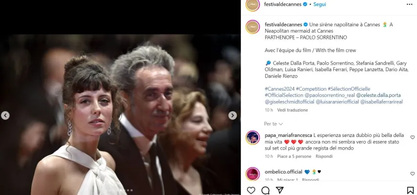 CANNES. Un'ovazione. Oltre dieci minuti di applausi. Parthenope, il nuovo film di Paolo Sorrentino (uscirà il prossimo autunno), in corsa alla Palma d’Oro al Festival di Cannes, meraviglia e stupisce, ma è ancora l’ulteriore summa, di contenuto, estetica, del suo cinema, questa volta con una novità importante (nell’immaginario costruito in tanti anni, film e serie) lo sguardo di un personaggio femminile. La sua Parthenope, nome antico di Napoli, è un viaggio cronologico ed esistenziale, profondo e di formazione, che comincia nel 1950, attraversa gli anni ‘70, e arriva fino ai giorni nostri, precisamente nel 2023, nel descrivere la propria crescita, gli incontri rivelatori, da uno scrittore (Gary Oldman), a un professore (Silvio Orlando), con altre donne (Isabella Ferrari e Luisa Ranieri), le esperienze, anche dolorose. Proteggendo la sua giovinezza, si prepara al passare del tempo, nella concretezza dell’esistenza, sogna, immagina e ci conduce nella scoperta di tutto ciò.