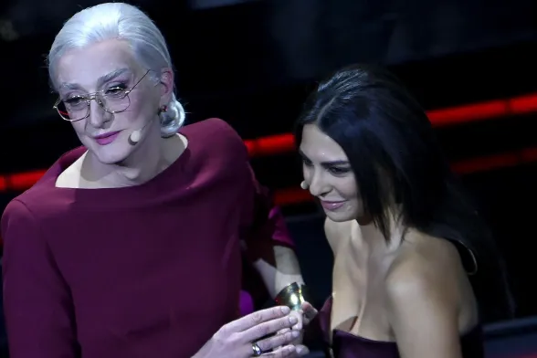 Immagine Festival e diritti negati Ritorno a sorpresa di Drusilla Foer che si commuove: la lotta delle attiviste iraniane irrompe a Sanremo 9/02/2023