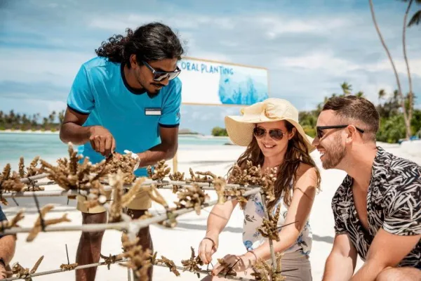 Insieme al suo team di 5 persone, Thuhu si occupa di coral propagation e reef restoration, attività che hanno già dato risultati incoraggianti con l’immissione in mare di oltre 80 strutture di corallo. Un’iniziativa aperta agli ospiti del resort e un’emozionante esperienza che comporta proprio il fissare i coralli alla struttura e quindi, muniti di maschera e pinne, tuffarsi in mare per posizionarla in un’area adatta alla crescita.