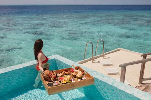 Il lusso di una prima colazione in camera è un piacere tutto femminile. E quando mai ricapita di farsi servire la colazione, non solo in camera, ma su un vassoio galleggiante direttamente nella piscina privata della propria villa? Al Sun Siyam Iru Veli, raffinatissimo resort di sole suites, è possibile avere questo privilegio e assaggiare tantissime prelibatezze dolci e salate accompagnate da caffè, spremute fresche e, naturalmente, da champagne per brindare a un momento unico. Occasione ideale per un selfie indossando il costume da bagno più bello e per regalarsi una giga-coccola da principessa in acqua.