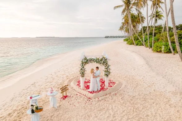E gli sposi possono anche sposarsi simbolicamente o rinnovare i loro voti in riva al mare delle Maldive: Sun Siyam Resorts ha preparato dei pacchetti speciali e personalizzabili che includono tutto, con un wedding coordinator che si occupa di ogni dettaglio, officiante, decorazioni, fiori, banchetto, servizio fotografico ecc.
