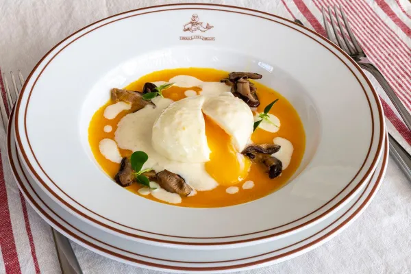 Ma citazioni e tracce si ritrovano anche nella letteratura, tra le opere di grandi autori dell’epoca: il romanzo “Piccolo mondo antico” di Antonio Fogazzaro e la “Guida ad uso di chi viaggia in Italia” di Stendhal narrano episodi che hanno proprio il Delfino come cornice. Oggi, dunque, la struttura rivive, e lo fa anche come ristorante, con una bella terrazza che affaccia sul Lago: alla guida lo chef Luca Vietti, che punta su una cucina italiana preparata con prodotti di qualità, rielaborati in chiave contemporanea. Tra i suoi piatti più originali l’Uovo con crema di carote, funghi shiitake e salsa al parmigiano (chi alloggia negli appartamenti ha inoltre l’opportunità di avere lo chef Vietti per cene private).